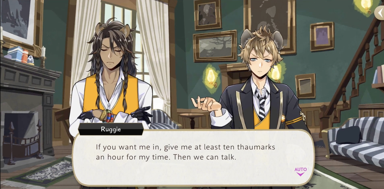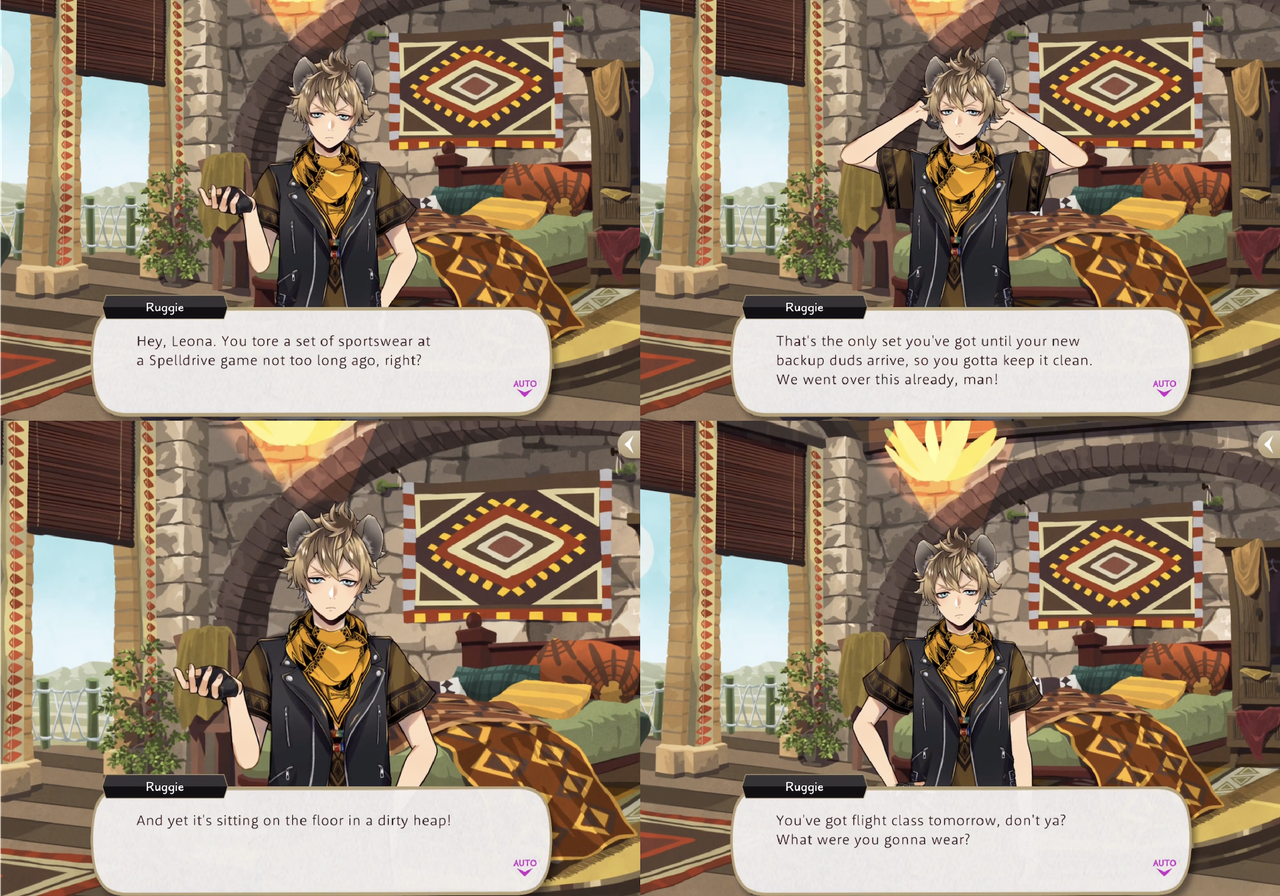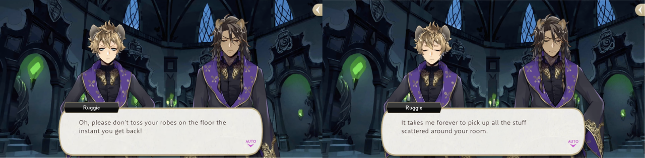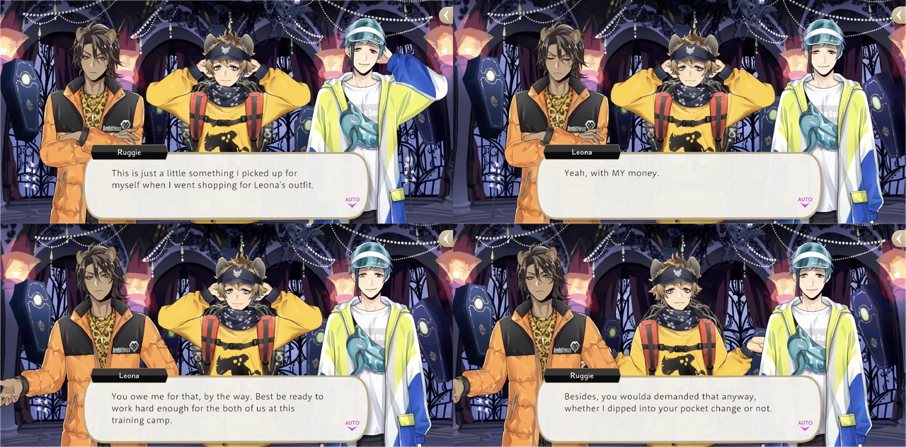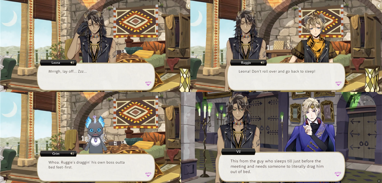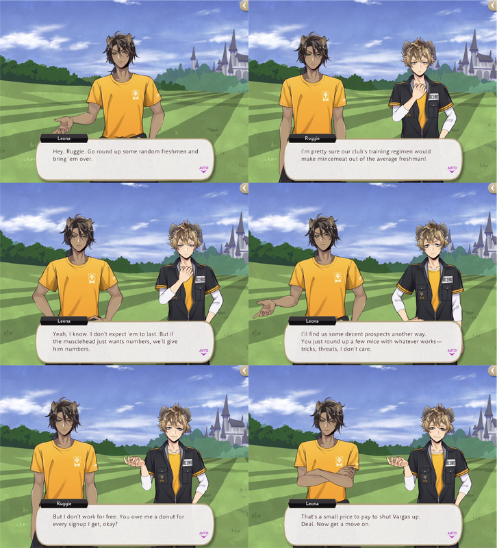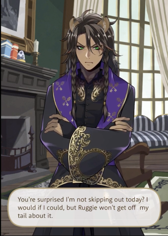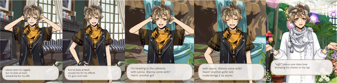 Ruggie says, “Leona runs me ragged, but he does at least reward me for my efforts. It’s give-and-take,” and he has several lines about doing chores for Leona.
