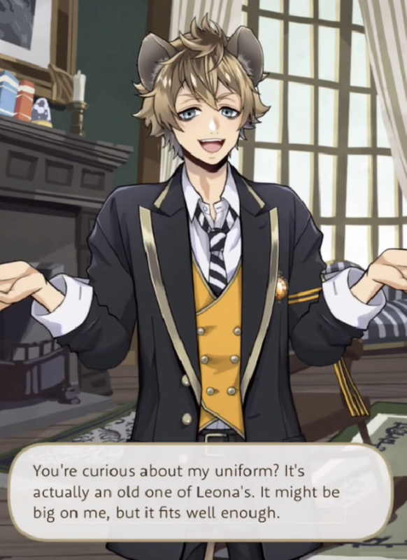 We have never seen Leona argue with the prices Ruggie charges for his services (such as ten thaumarks (1,000 madol) an hour during Fairy Gala) and he has also provided Ruggie with his old school uniform, possibly due to Ruggie being unable to afford one himself.