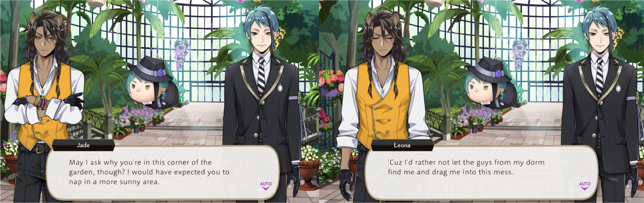 When Jade happens upon Leona in a shaded area rather than a sunny spot within the gardens Leona explains, “’Cuz I’d rather not let the guys from my dorm find me.”