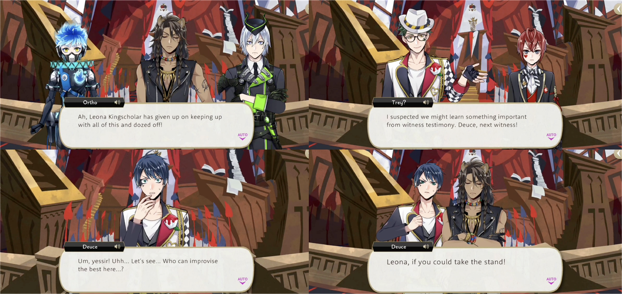 Leona falls asleep during the trial of Cater’s dream in Book 7, not waking up even after Deuce chooses him as a witness as the person he assumes will be best at improvisation and drags him to the witness stand.