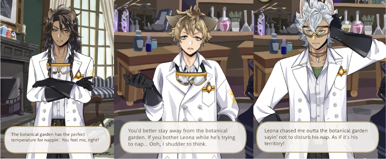When Kalim and Cater go to the botanical gardens to seek him out, Leona greets them with, “Any reason you decided to waltz into my territory like you own the place?,” while Ruggie says he treats the gardens like a second home.