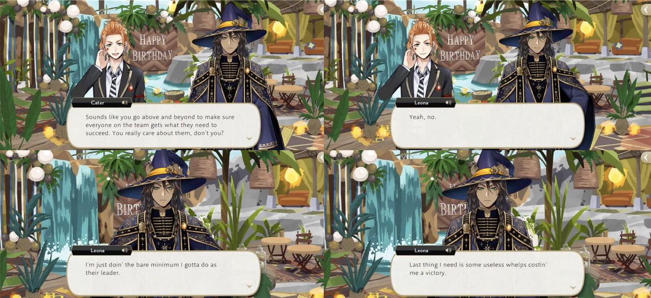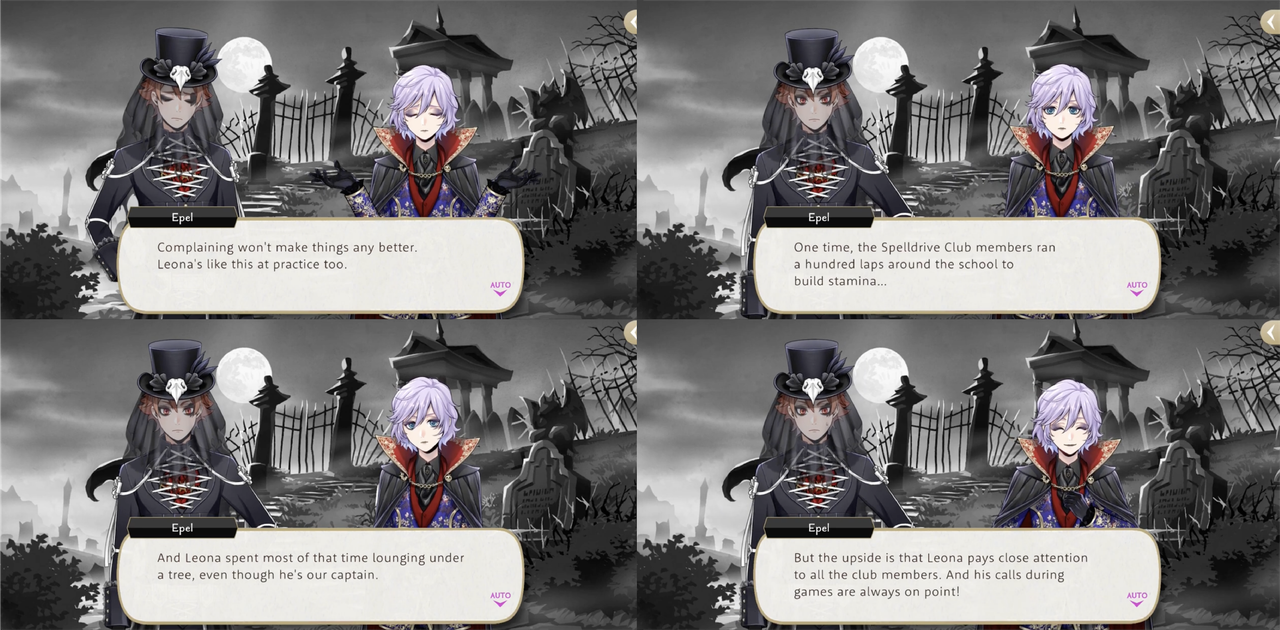 Epel tells Ace about a time when the spelldrive club once ran a hundred laps around the school to build stamina, “And Leona spent most of that time lounging under a tree…But the upside is that Leona pays close attention to all the club members. And his calls during games are always on point!”