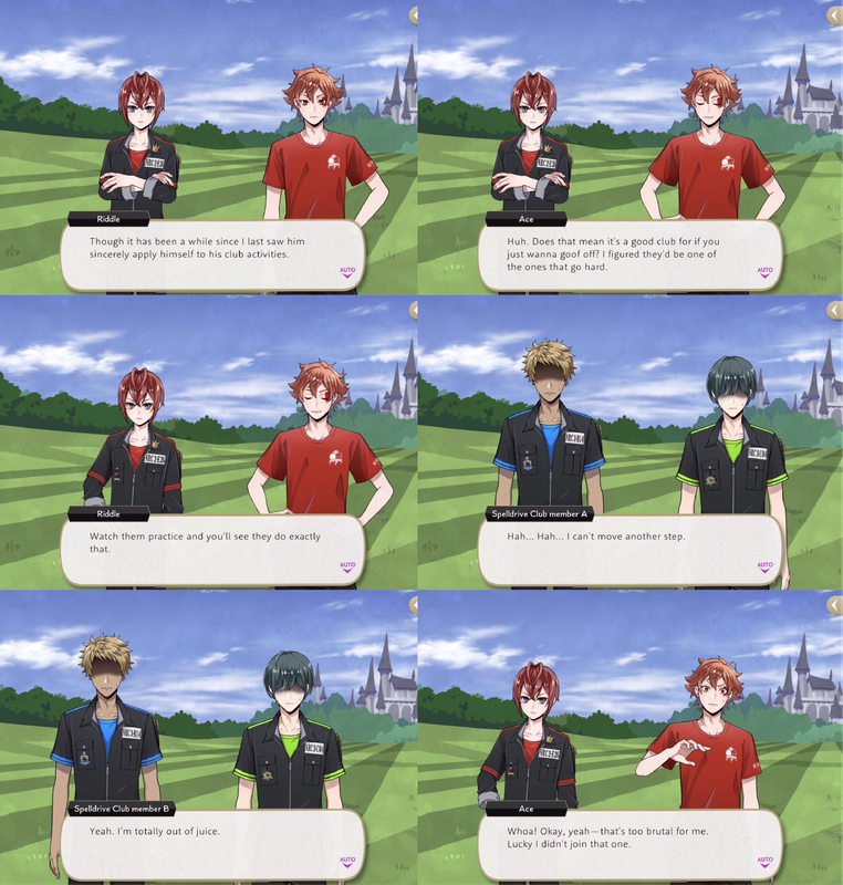 We see an example of spelldrive club practice in a vignette where watching exhausted spelldrive club members convinces Ace that the club is “too brutal” for him, and another practice where five members of the spelldrive club go after Leona for thirty minutes without being able to get the disc from him. Leona refers to the exercise as “barely a warmup.”