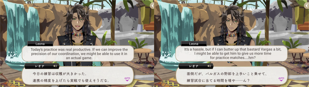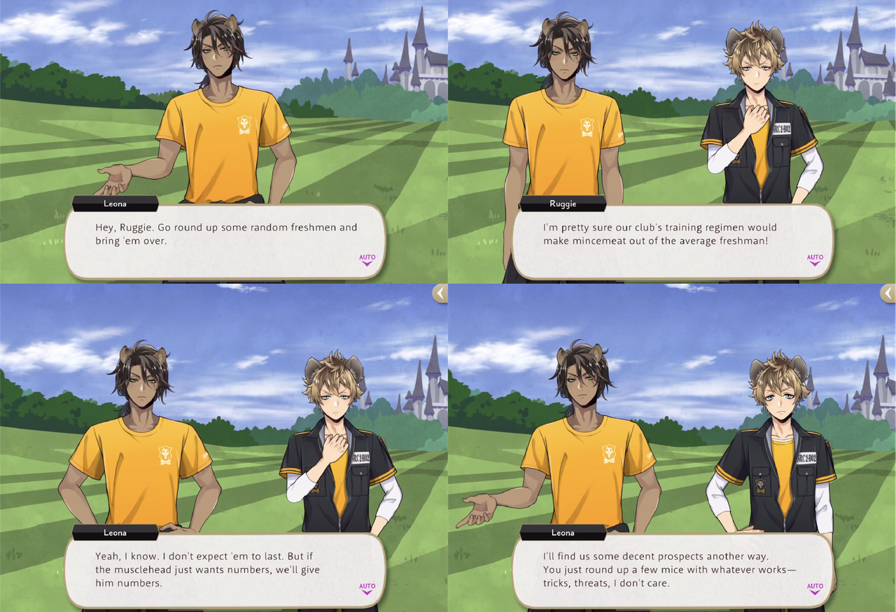 Leona talks about eating “nice cuts of meat” on spelldrive club game days and Ruggie says, “Even when the crowd is goin’ wild during a game, Leona’s voice cuts through loud and clear. That’s a lion’s roar for ya.”