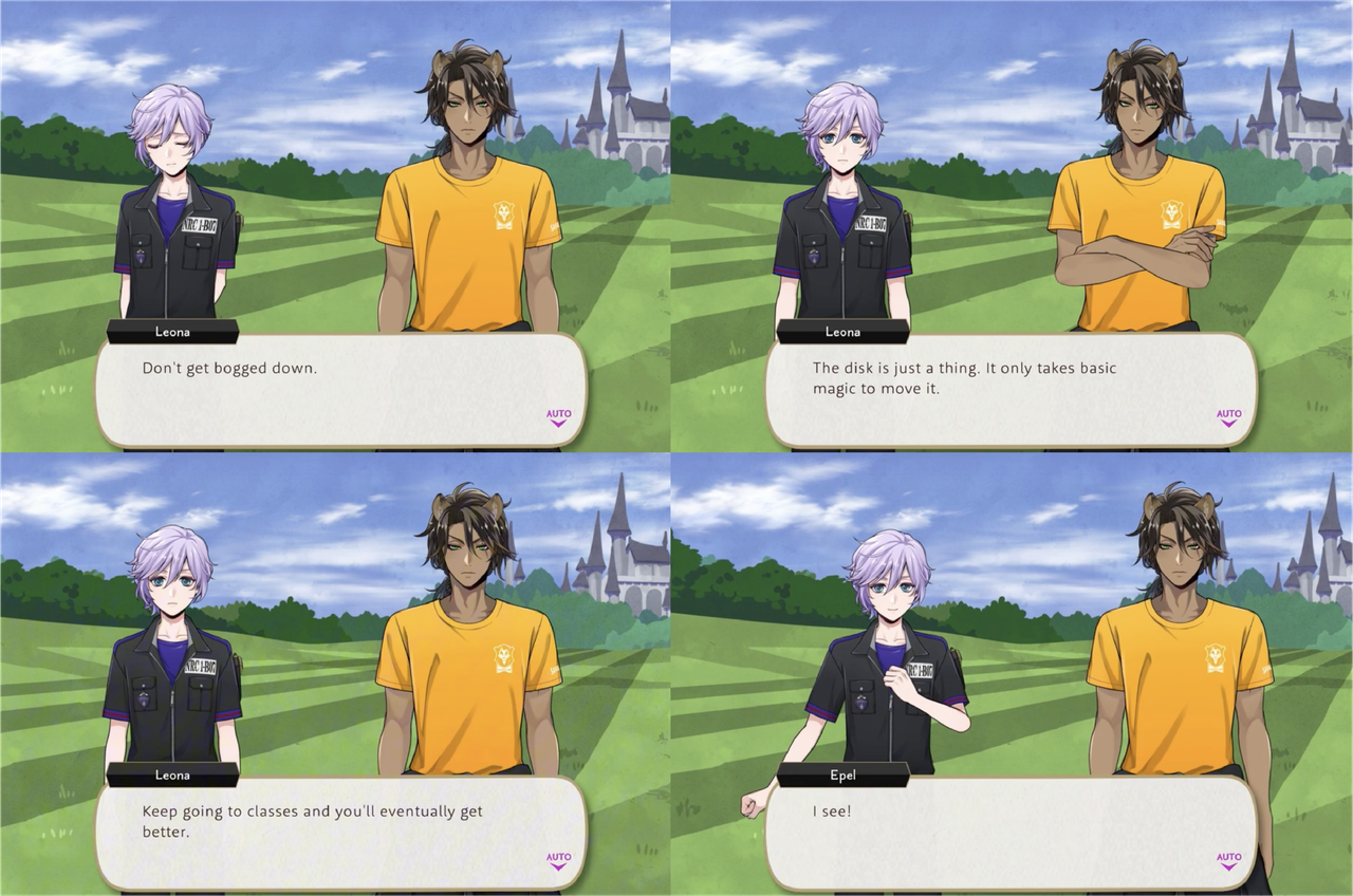After a conversation about magically levitating cargo Leona explains that Epel is one of the best first-year fliers they have, but focusing on other areas will make his main skill suffer, and he should just keep going to classes: “you’ll eventually get better.”