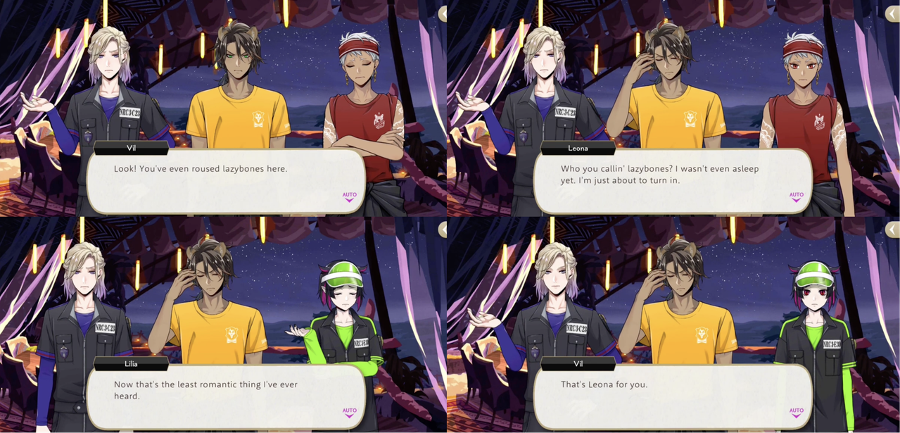 He also calls Leona lazy multiple times and when Lilia comments on Leona being unromantic Vil responds, “That’s Leona for you.”