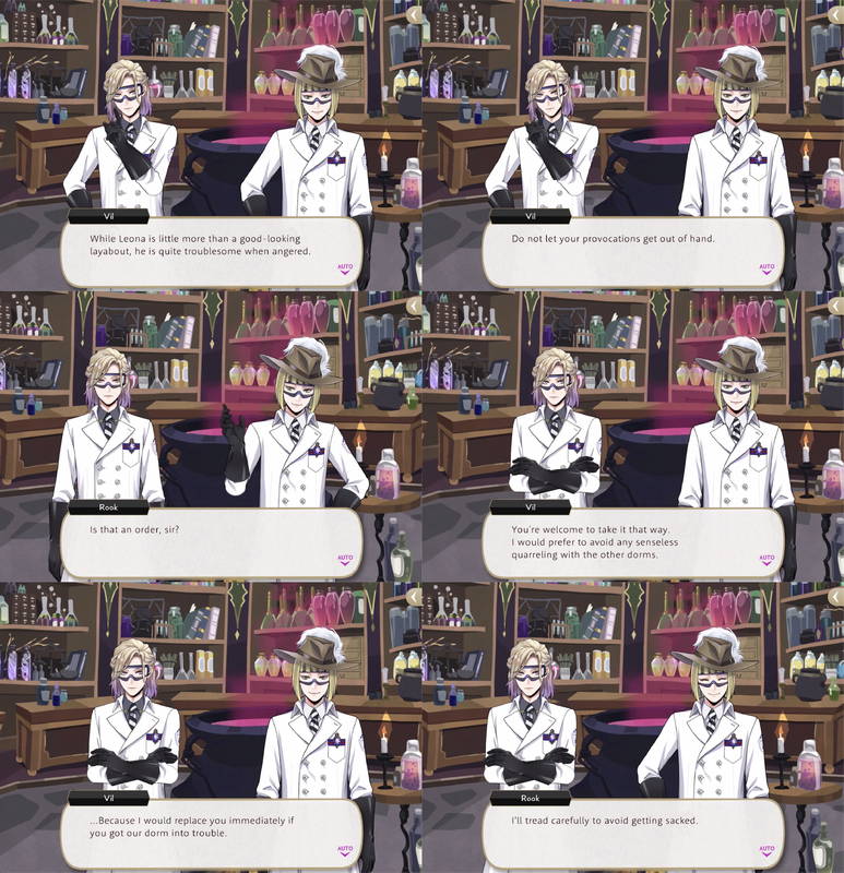 For all his frustration with Leona, Vil is not pleased by Rook’s pursuit of him, telling Rook to not let his provocations get out of hand.