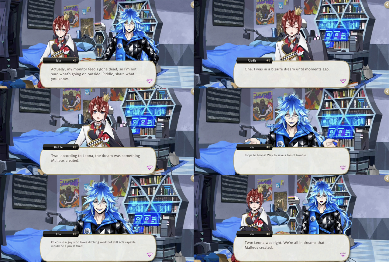 After Riddle is summoned to Idia’s room in Book 7 in the lead-up to the final fight against Malleus, he tells Idia he already knows that the dream he had been in was created by Malleus, as he was informed in advance by Leona.