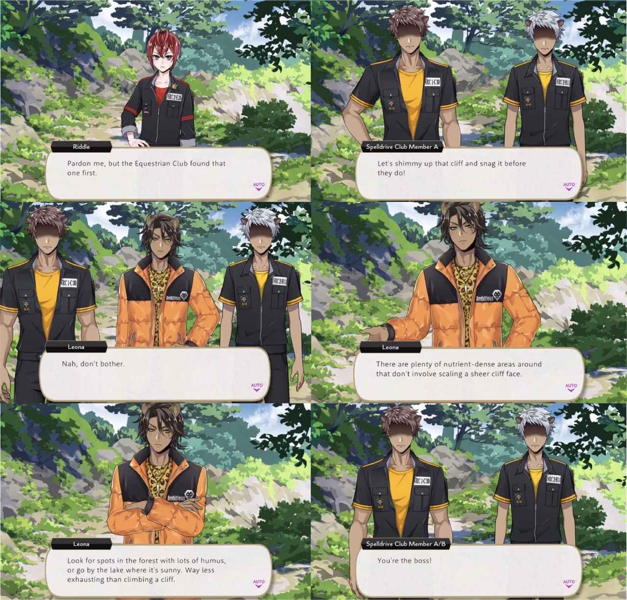 The catalyst of the Cloudcalling event is Leona not wanting to give “guardian lessons” to the winner of a local tournament. Instead he trains the group of Vil, Kalim and Lilia, saying, “We can pretend I did the lessons and no one will be the wiser, as long as we get our stories straight.”