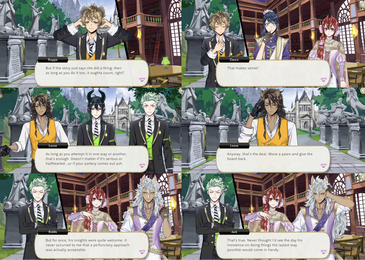 Leona’s penchant for avoiding work was possibly a major factor in why the lantern event group was able to complete their tasks by the deadline: they had been completing each and every task to its fullest until Leona tells them, “ As long as you attempt it in one way or another, that’s enough,” earning approval from both Riddle and Jack.