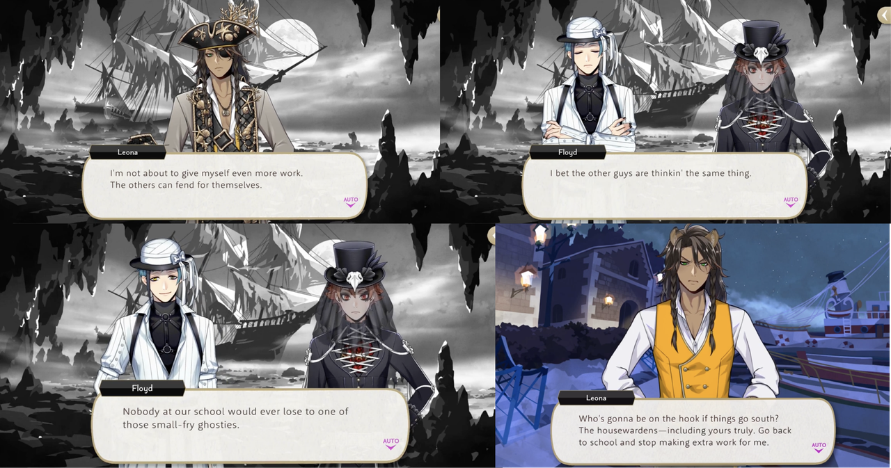 Leona refuses to focus on anyone outside of his own group during Spectral Soiree (Floyd: “I bet the other guys are thinkin’ the same thing”), and his argument for Jack staying away from Playfulland is, “Who’s gonna be on the hook if things go south? The housewardens-including yours truly. Go back to school and stop making extra work for me.”