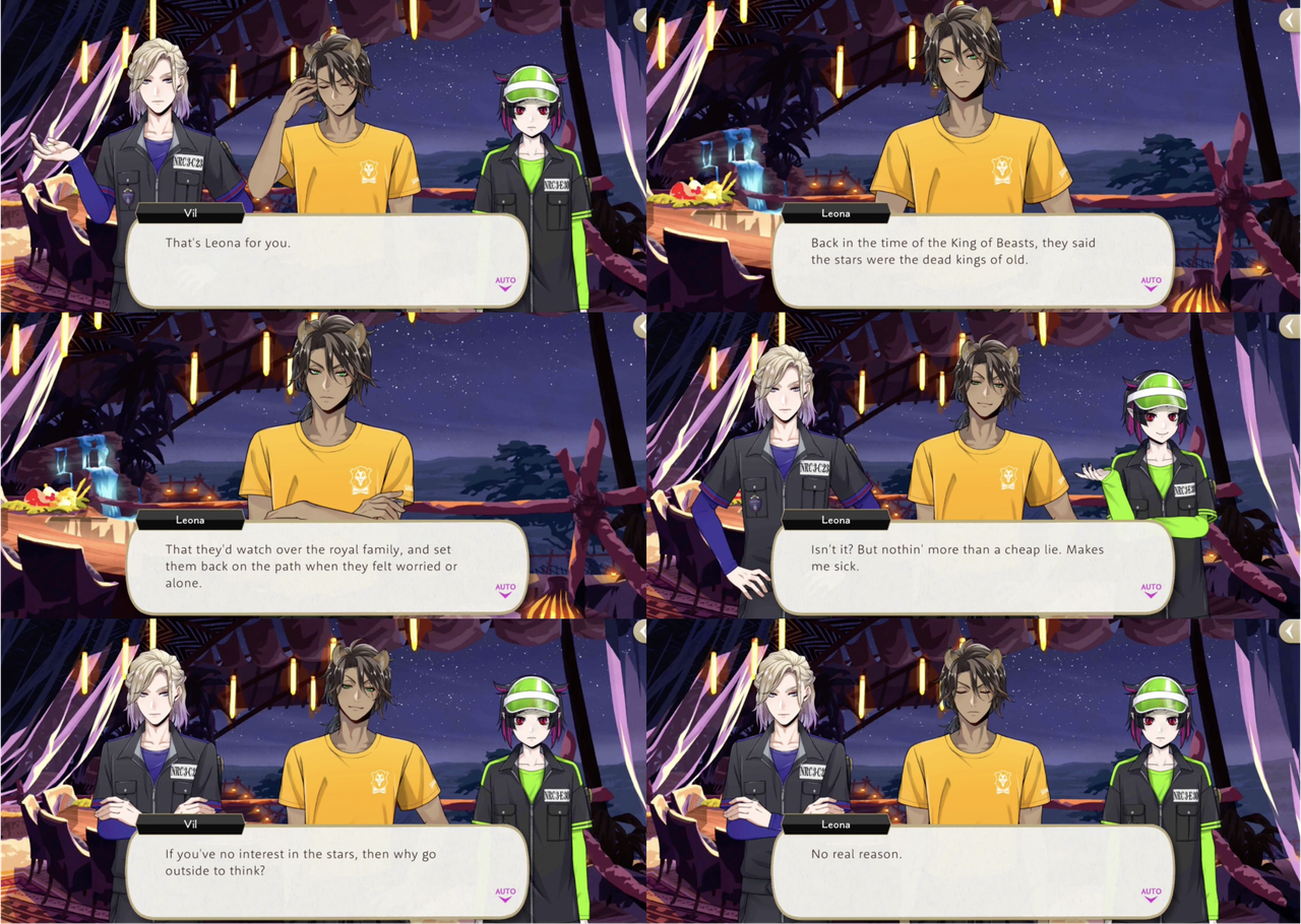 During the Cloudcalling event Lilia reveals that Leona has been “gazing at the stars all wistful” and Leona explains, “Back in the time of the King of Beasts, they said the stars were the dead kings of old. That they’d watch over the royal family, and set them back on the path when they felt worried or alone.”