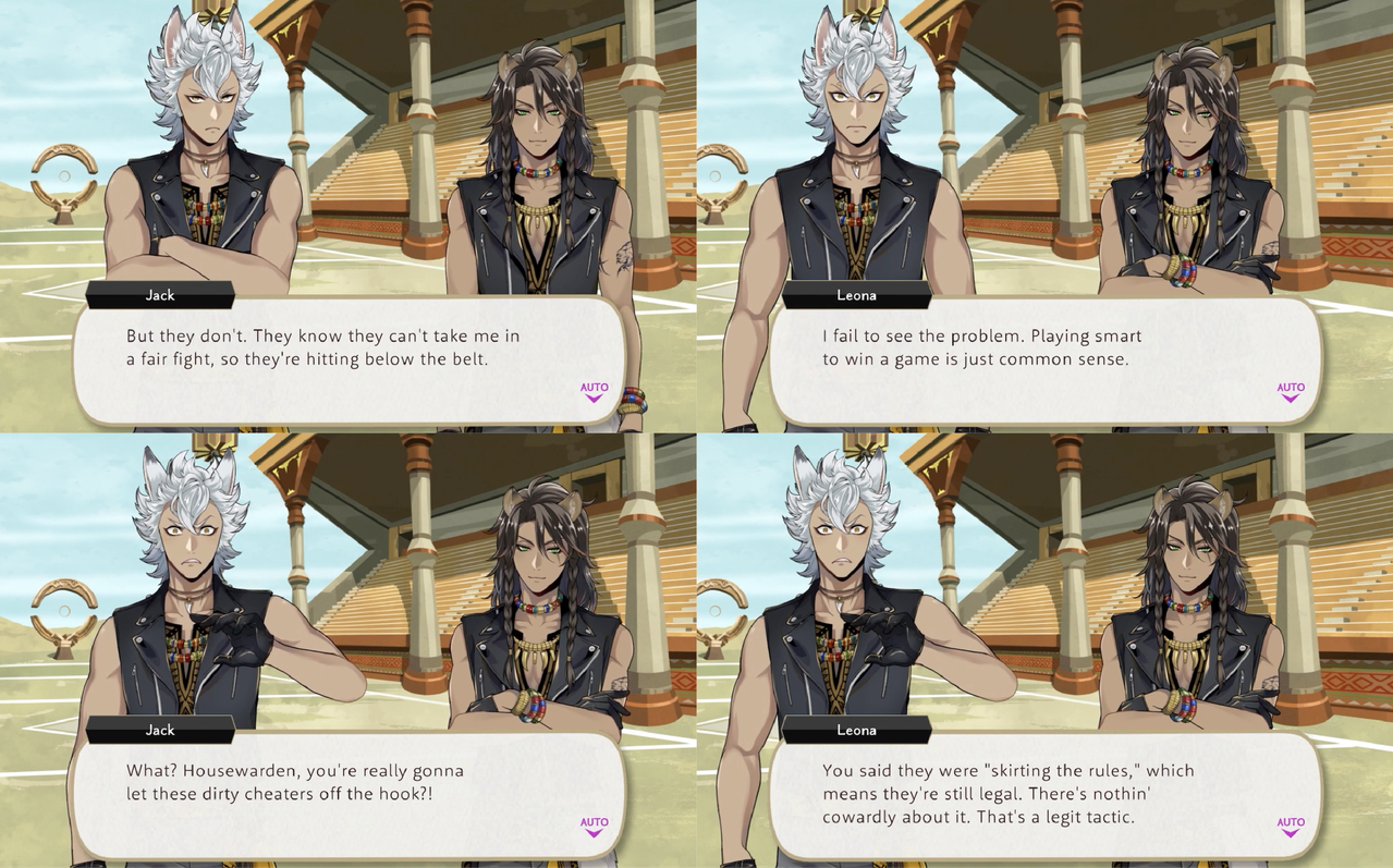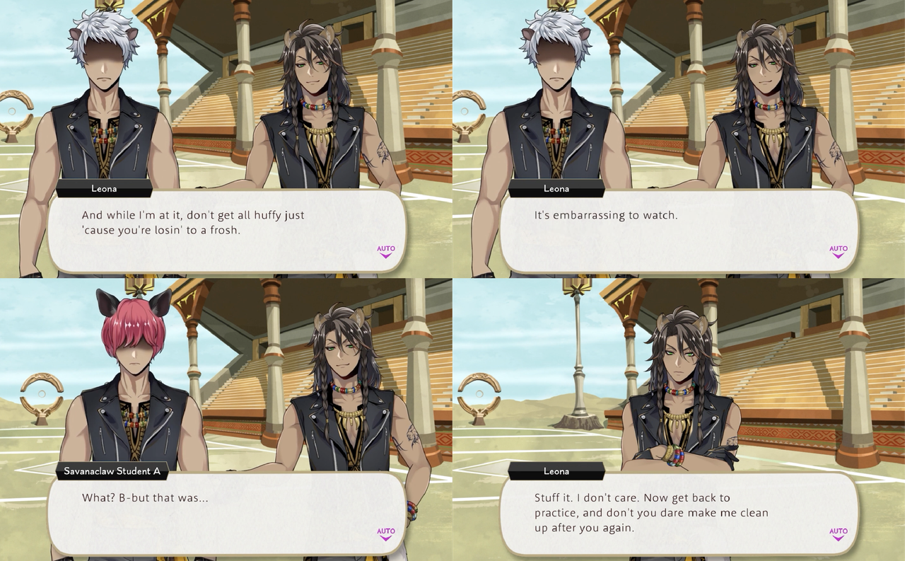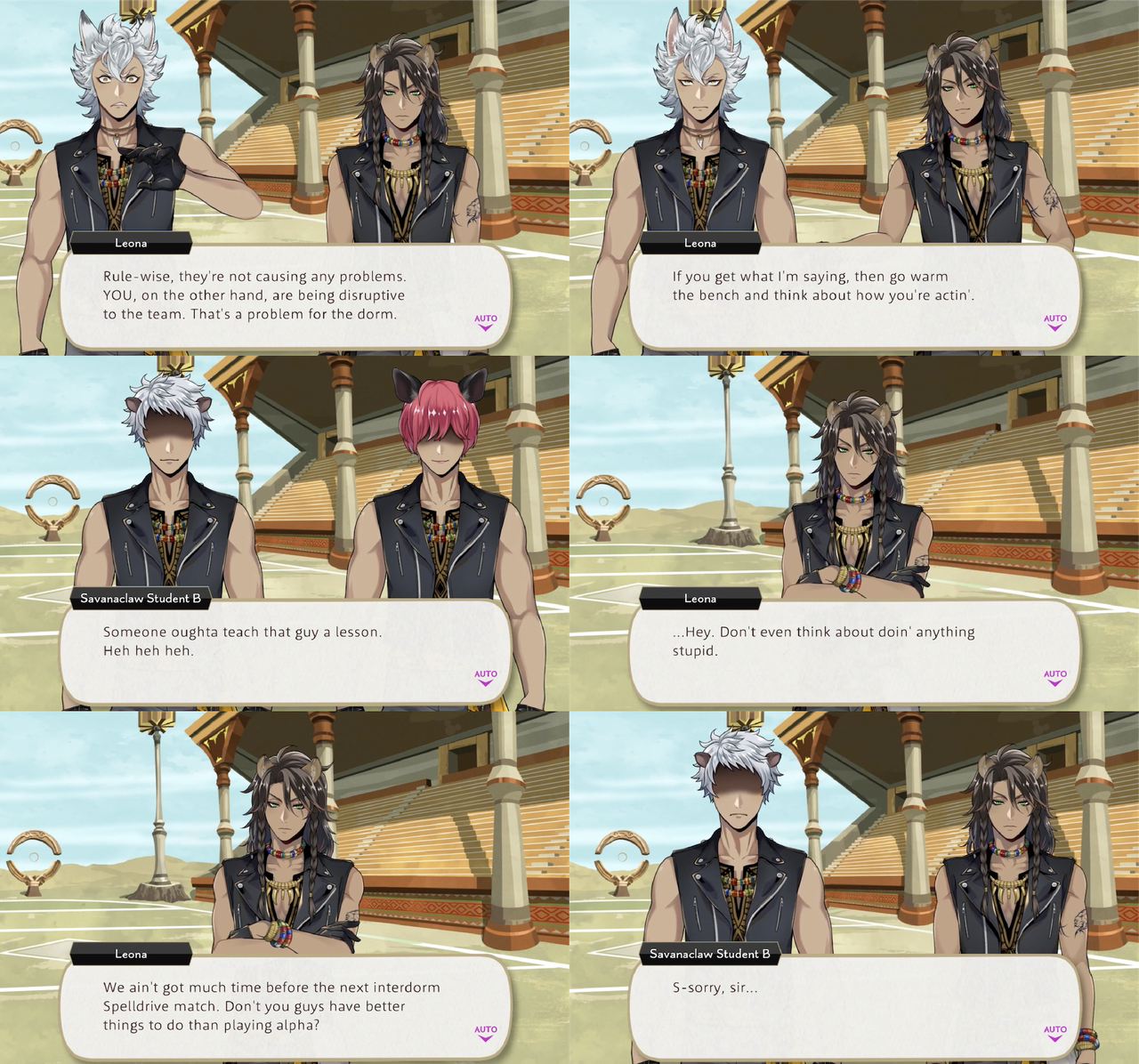 Leona protects Jack behind the scenes repeatedly: in a vignette he see him scold Jack for failing to “play smart” against a group of upperclassmen as though he is not on Jack’s side, but as soon as Jack is out of earshot he turns on the upperclassmen themselves for getting “all huffy” about losing to a first-year student (“It’s embarrassing to watch”) and telling them, “don’t you dare make me clean up after you again,” as though warning them off Jack, without Jack’s knowledge.