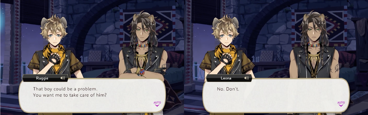 After reuniting with Jack towards the end of Spectral Soiree Leona teases him for being a “little lost pup” and Ruggie whispers, “C’mon, Leona. Would it kill you to be honest with the guy and tell him you were worried?”