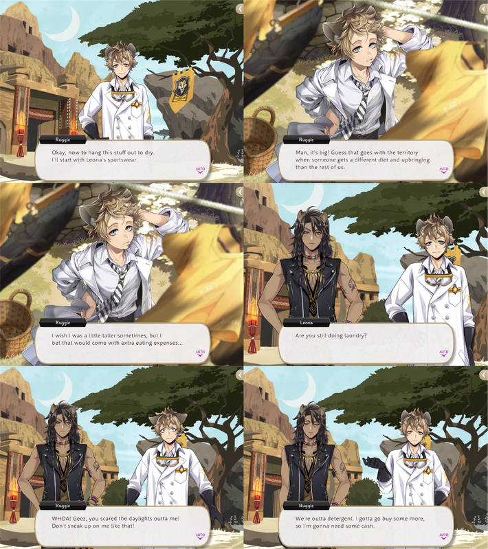 While Ruggie might have noticed Leona’s concern for Jack, he may not have realized the efforts Leona goes to for Ruggie himself: in a vignette where Ruggie is doing both his and Leona’s laundry he audibly reflects on how he wishes he was a little taller, but “that would come with extra eating expenses,” at which point Leona appears behind him and hands over his entire wallet when Ruggie says he needs money for laundry detergent.