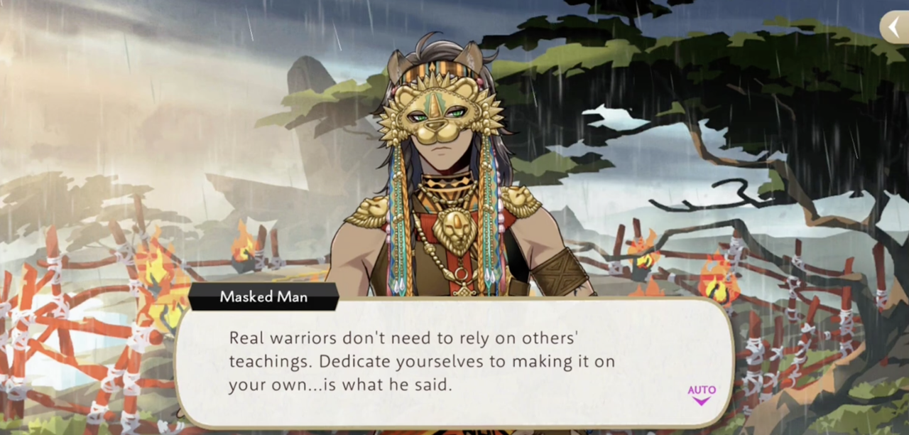 While often providing help behind the scenes and denying when he is found out, Leona will refuse to offer overt assistance, telling a palace guard in his hometown that “Real warriors don’t need to rely on others’ teachings” and he should dedicate himself to making it on his own.