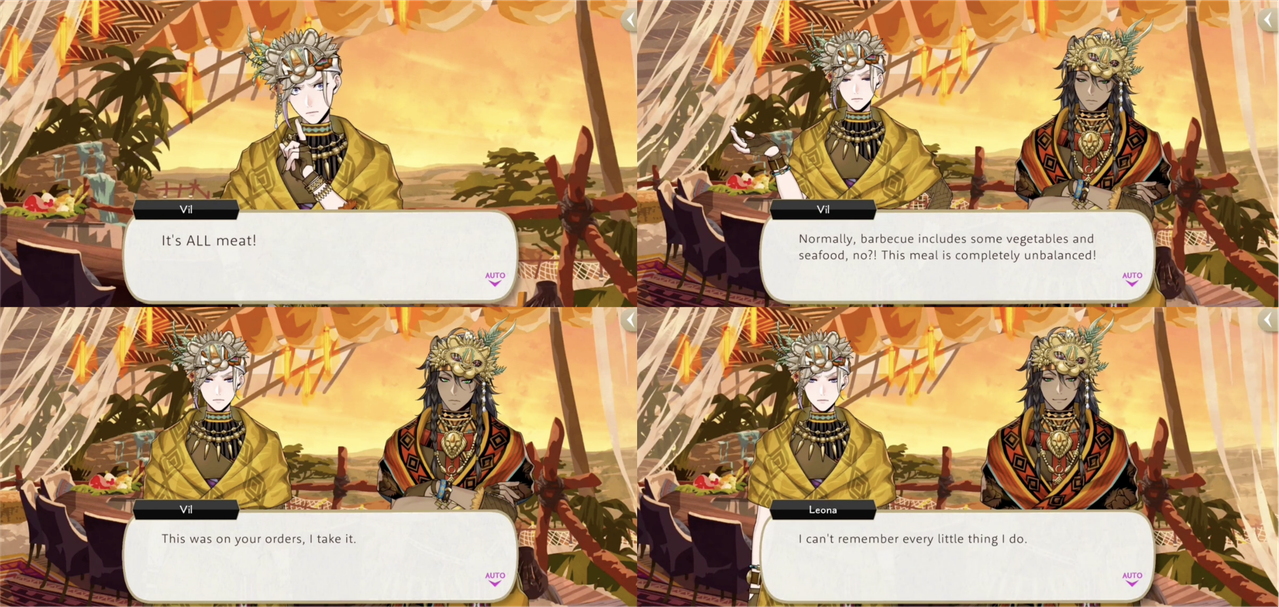 Ruggie asks how Leona got his and Leona responds, “Who knows? I can’t be bothered to hang on to every dusty old memory,” and getting out of conversations by claiming he has forgotten something seems to be a habit of Leona’s: when Kifaji asks him about the previous year’s Cloudcalling Festival he claims that he merely forgot to attend, following with, “And probably will again. You know how it is.” Later he reveals he actually “blew it off last year” and had been planning to say that he forgot again this time as well.