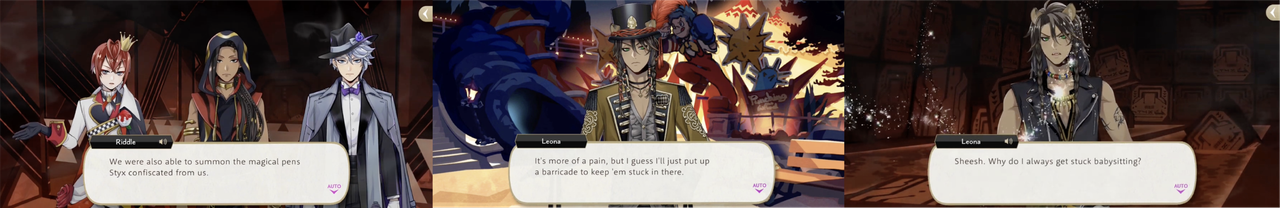 Leona also levitates Ace to safety during the Playfulland event (tossing him into Cater’s arms), and uses clothes-changing magic at least three times: in a vignette, Book 6 and Book 7.