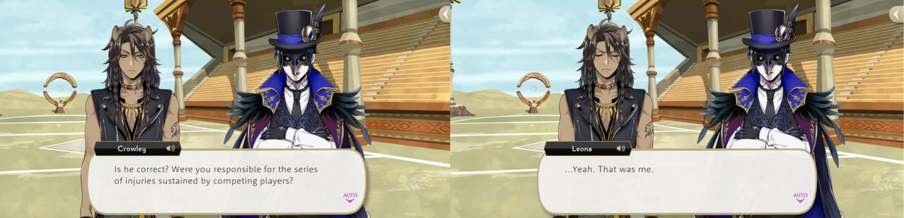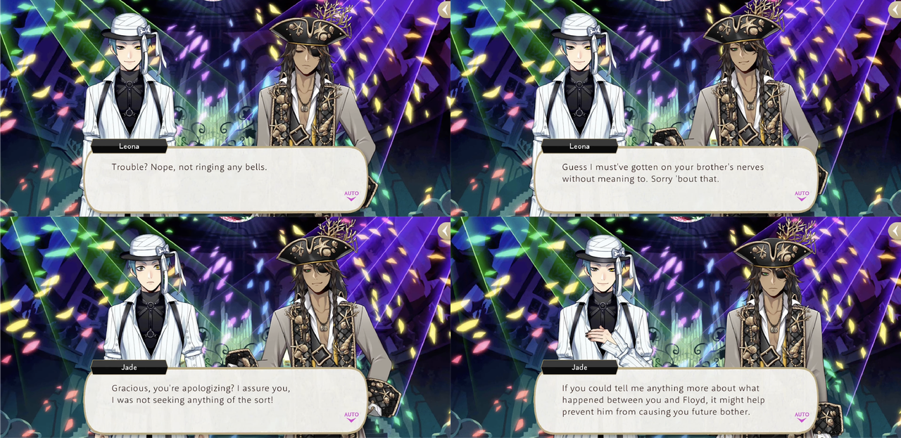 Grim is shocked when Leona takes responsibility for failing to warn Jack about the heat of Sunset Savanna, but Leona also takes responsibility for his actions of Book 2. He follows with, “If you want my apology, come and take it,” but we have seen him apologize before: he apologizes twice to Jade in the same conversation during Spectral Soiree, to Jade’s surprise, for “inadvertently” ignoring Floyd during a spelldrive practice session and souring his mood (Jade: “Gracious, you’re apologizing?”)