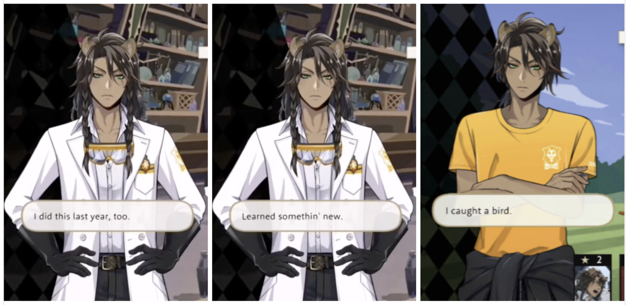 But he also says he “learned something new,” and that he caught a bird. It is a little unclear how canon the lesson lines are to the main story.