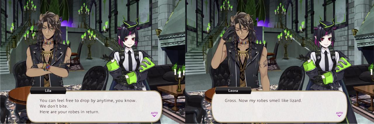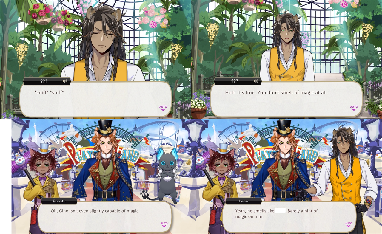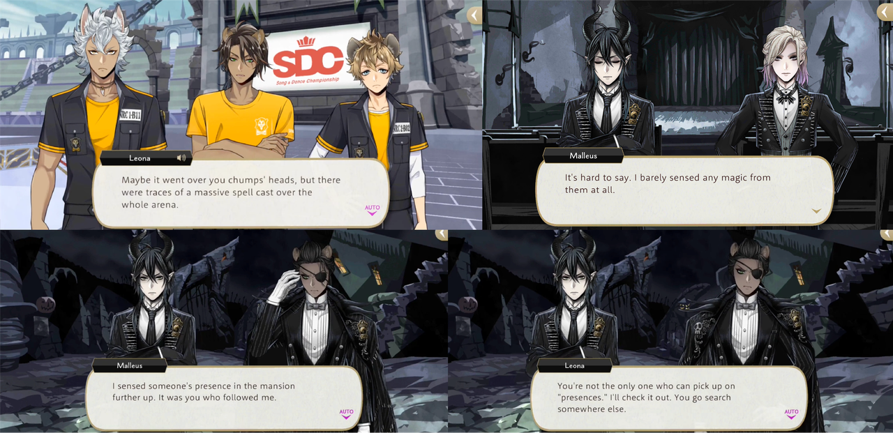Leona is capable of “sniffing” out magic with such precision that he is able to accurately tell that Skully possesses the same degree of magic as Epel. He says that Malleus is “not the only one who can pick up on ‘presences,’ and there is a fan theory that his mother is maybe at least partly fae for this magic-sensing ability that no other non-fae character seems to possess, for the mysterious lack of information around her, for how Leona is hated at home (the theory goes that he and Falena are half-siblings, with Leona’s mother possibly being the king’s second wife), and for how he is often depicted with vertical slit-like pupils.