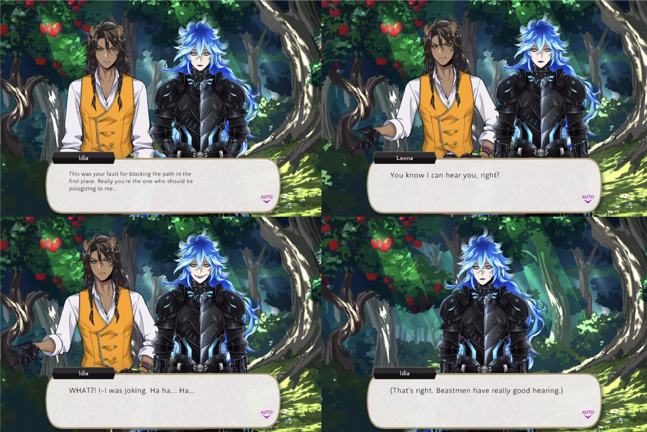 After Idia is done mumbling to himself about Leona being in his way in the forest behind the school Leona says, “You know I can hear you, right?,” and Idia silently reflects, “That’s right. Beastmen have really good hearing.”