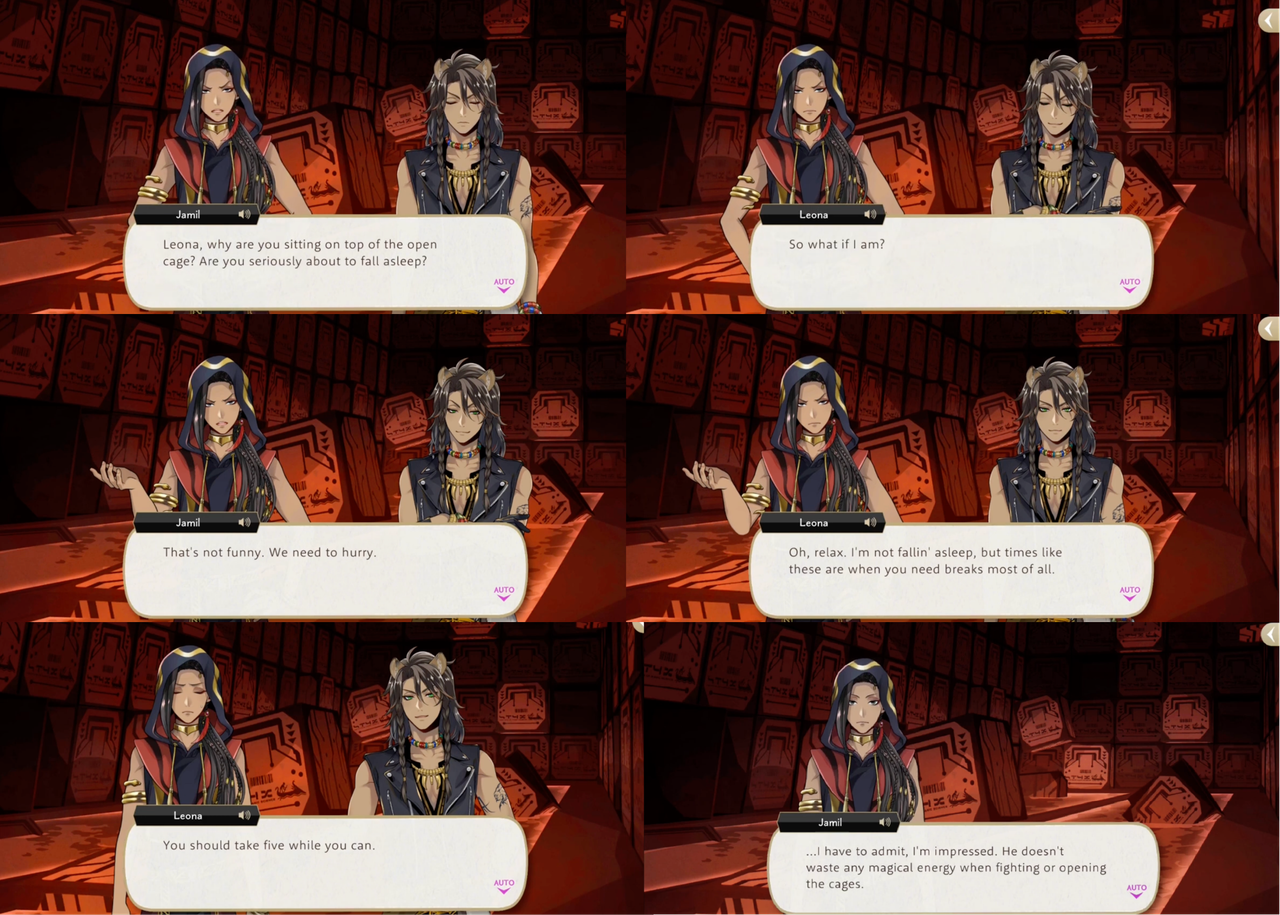 Being conscious of when to conserve his energy and magic is a theme with Leona and a tactic he uses in Book 6 as he and Jamil fight their way through Tartarus, while Jamil worries about how to keep going without burning through his magic reserves.