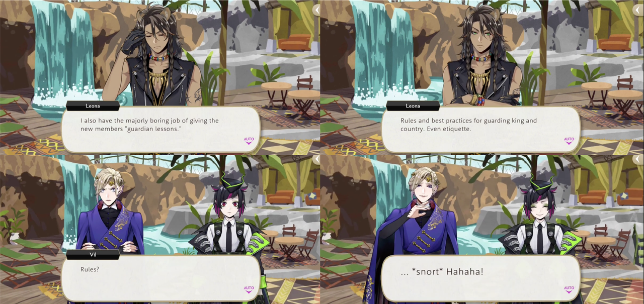 Leona orders the same of his group during Spectral Soiree and mentions the importance of resting to Malleus, to Cater, and devises the most efficient way to help Jack’s group during the lantern event that requires the least amount of time and energy for the group to accomplish their goal.