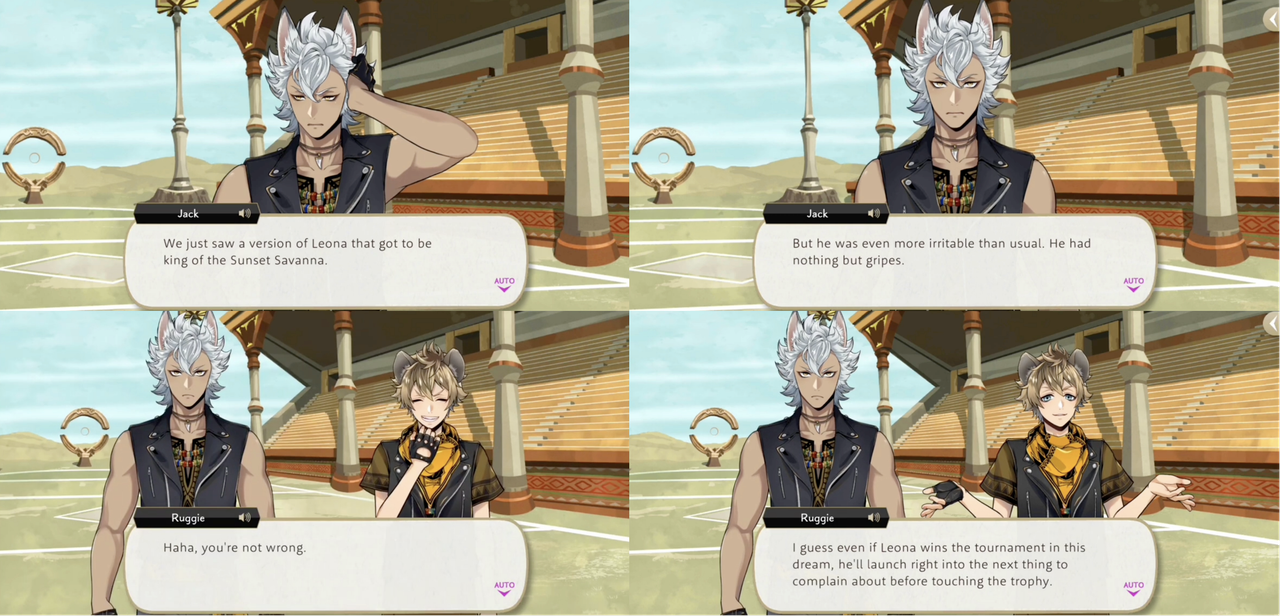 Ruggie concedes, saying, “I guess even if Leona wins the tournament in this dream, he’ll launch right into the next thing to complain about before touching the trophy.”