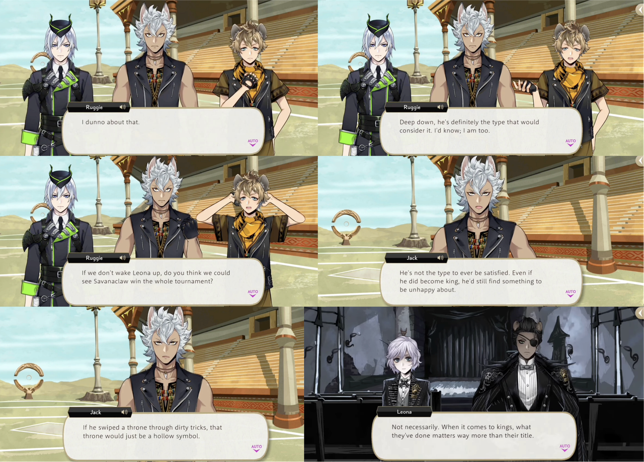 Ruggie wonders if they might leave Leona asleep long enough to see Savanaclaw win the tournament but Jack responds, “(Leona)’s not the type to ever be satisfied. Even if he did become king, he’d still find something to be unhappy about. If he swiped a throne through dirty tricks, that throne would just be a hollow symbol,” echoing Leona’s own sentiment of, “When it comes to kings, what they’ve done matters way more than their title.”