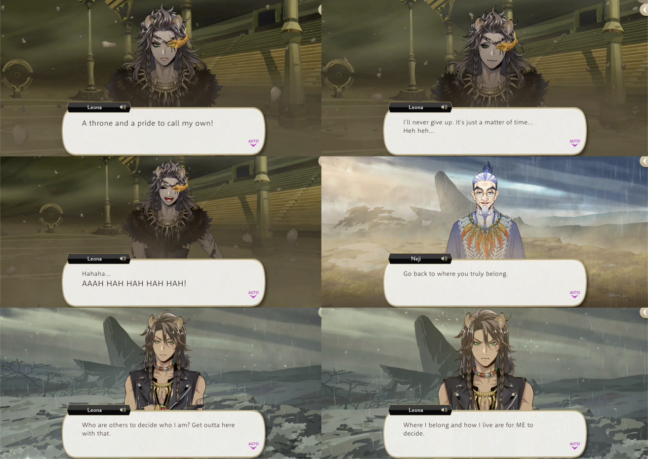 In contrast to the sleeping Leona in his dream-kingdom saying, “I am the king,” the newly awoken Leona says he is not a king, and he knows it.