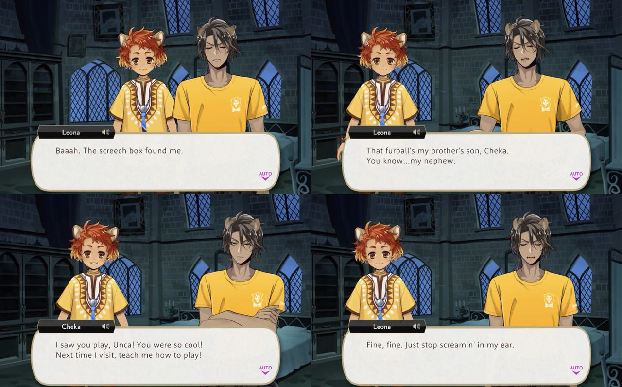 We meet Cheka in the main story when he escapes his attendants to visit Leona in the school’s infirmary, asking to be taught how to play spelldrive and “riding Housewarden Leona like a horse,” according to a shocked Jack.