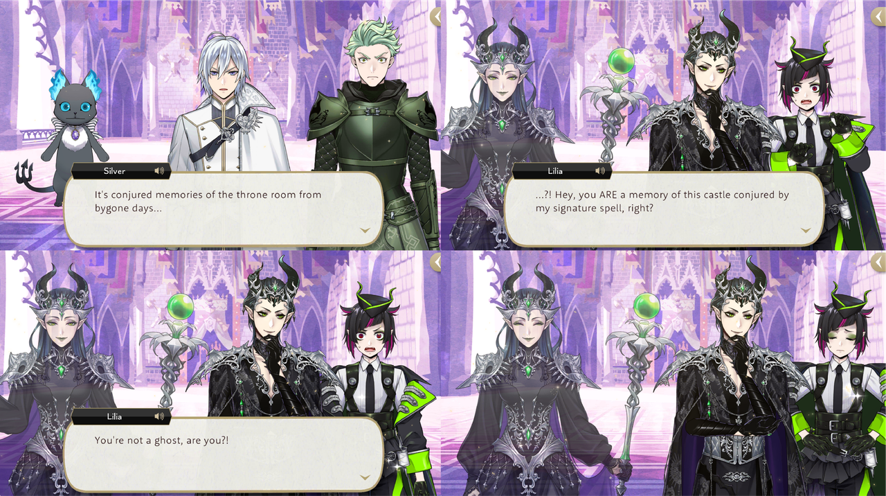 When Meleanor seems to react to them Lilia asks, “You ARE a memory of this castle conjured by my signature spell, right? You’re not a ghost, are you?!”