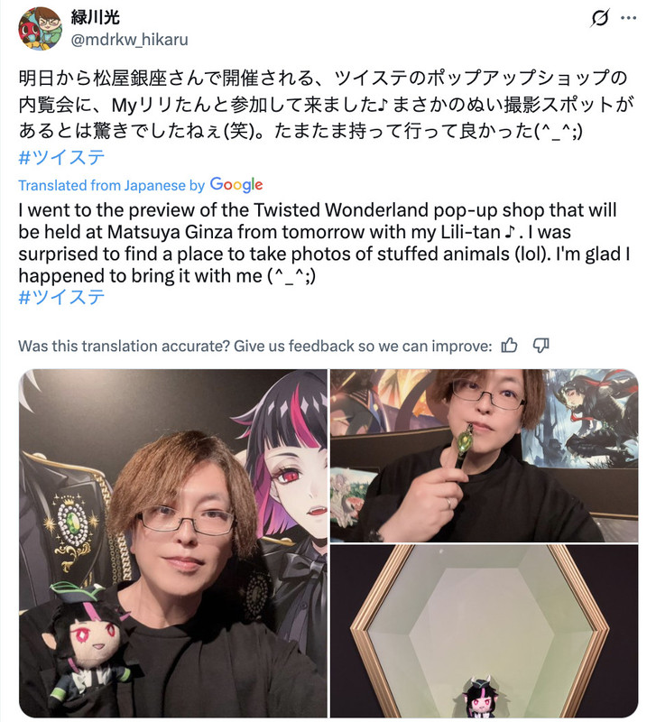 Midorikawa visited the 5th Anniversary, Blazing Jewel pop-up shop in Tokyo in June of 2025 with his own Lilia plushie. (source)
