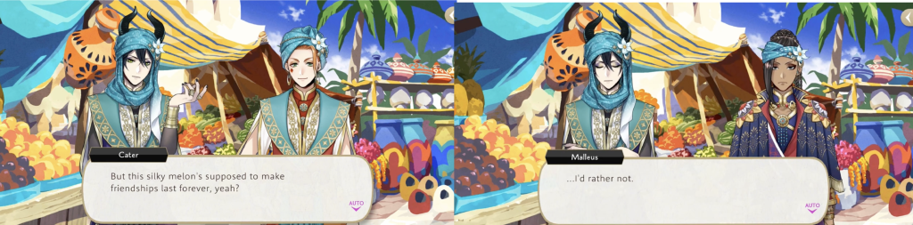 When Cater offers to take a photo of a melon that is “supposed to make friendships last forever” with the prefect, Trey, Grim, and Jamil, Malleus refuses.