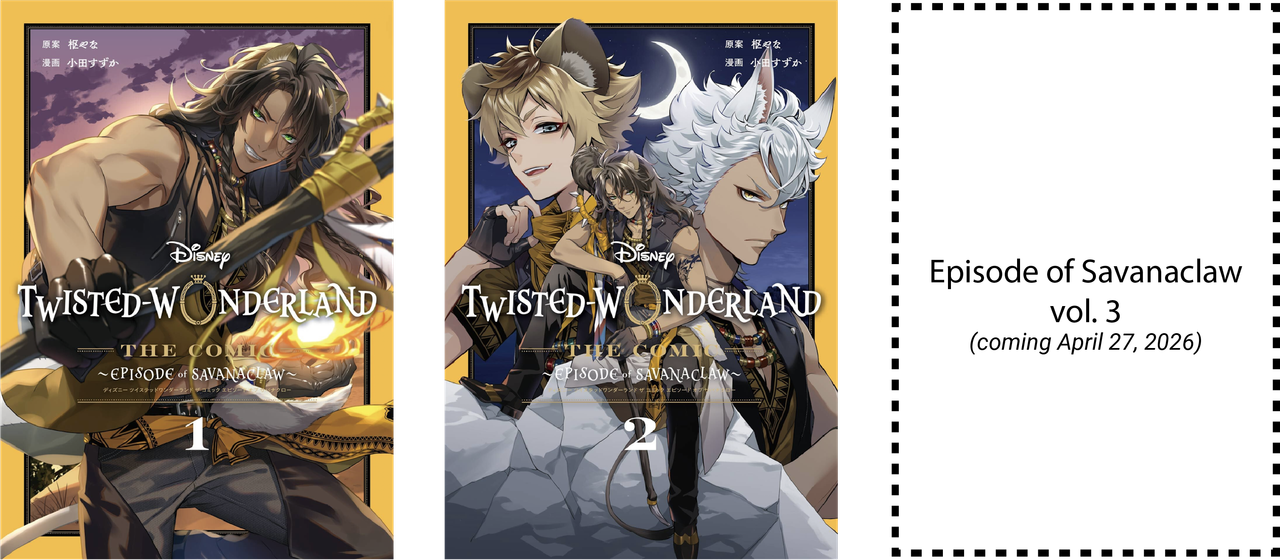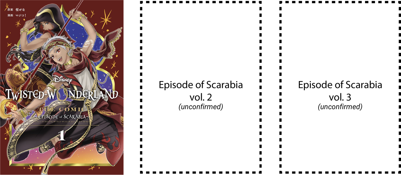 Twisted Wonderland 4Koma: not canon to the serialized manga, 4koma, anthologies or to the game. Released monthly in G-Fantasy magazine from March 18, 2024 to August 18, 2025. Published compilation available from October 27, 2025. (not available in English)