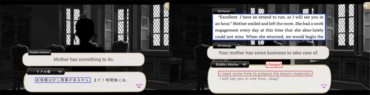 (There are many fan theories about what it is that Riddle mother was doing for one hour every day when he was a child that may confuse EN-game players, as the EN game invented a reason for why she was leaving that does not exist in canon, while the EN novel specifies a “work engagement,” which the original novel does not.)