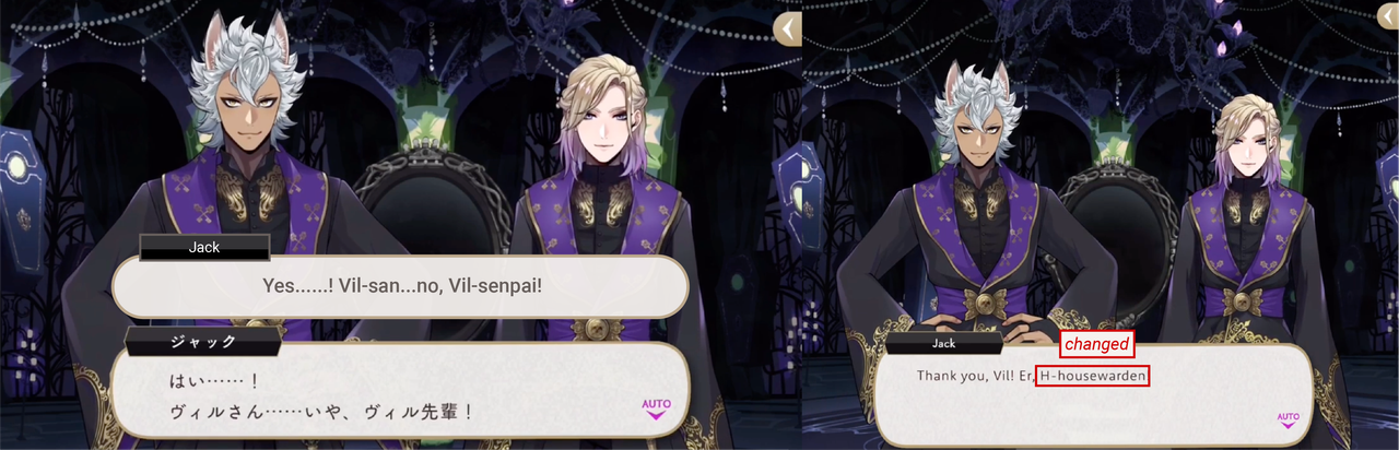 (This is also true of non-housewarden characters: no one in the original game ever refers to anyone but the housewarden of their own dorm with the “Housewarden” title. This rule is different on EN, where Jack once refers to Vil as “Housewarden.”)
