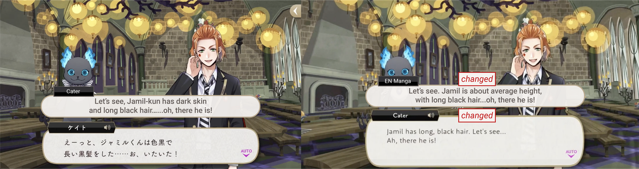 A comparison of the official English translation of volume 6 of the Twisted Wonderland manga vs. the original manga (vs. the original game vs. EN server)