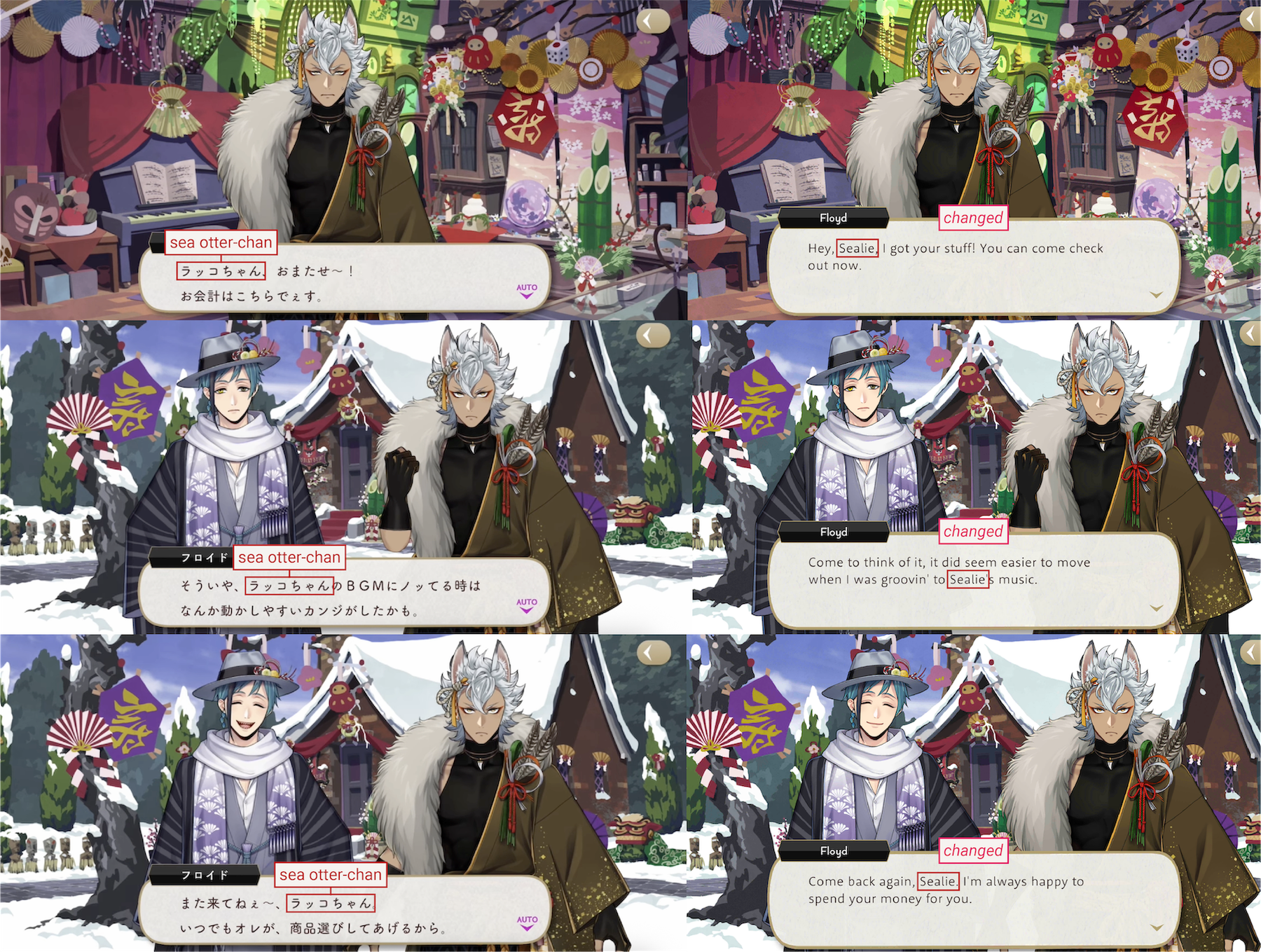Floyd’s nickname for Kalim is localized as “Sea Otter” (original: sea otter-chan), on EN, but during New Year’s it was miswritten at least seven times as “Sealie,” the English-language localization of Floyd’s name for Grim (seal-chan), not for Kalim.