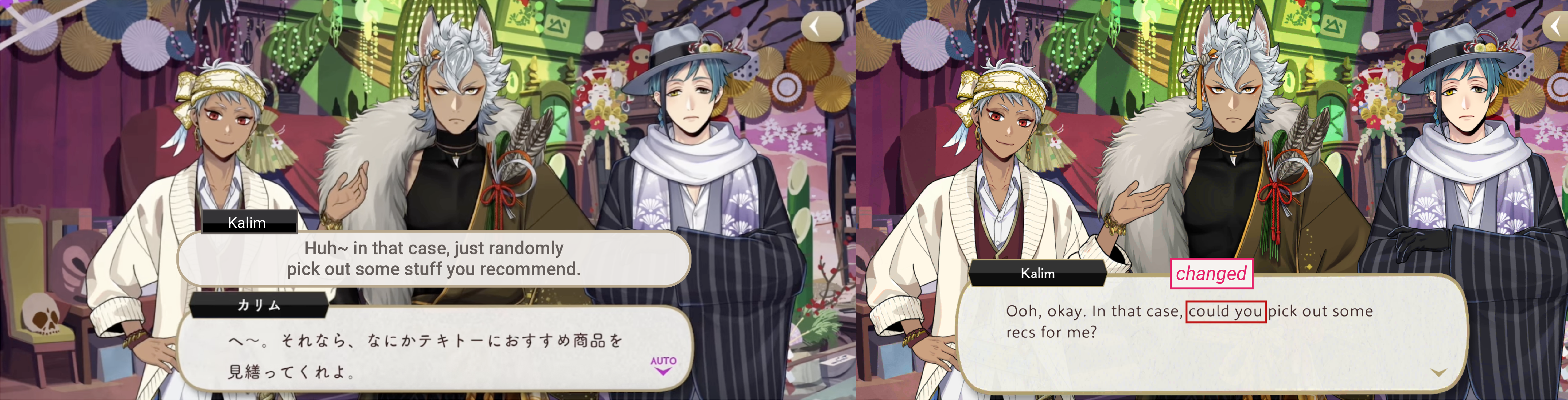 EN rewriting Kalim’s dialogue to be more polite than he actually speaks is a theme on EN (more here ▶︎), but Kalim’s rudeness is important to the plot of the Main Story, with Jamil realizing that he is still in a dream in Book 7 due to a false version of Kalim speaking more humbly and politely that the real Kalim.