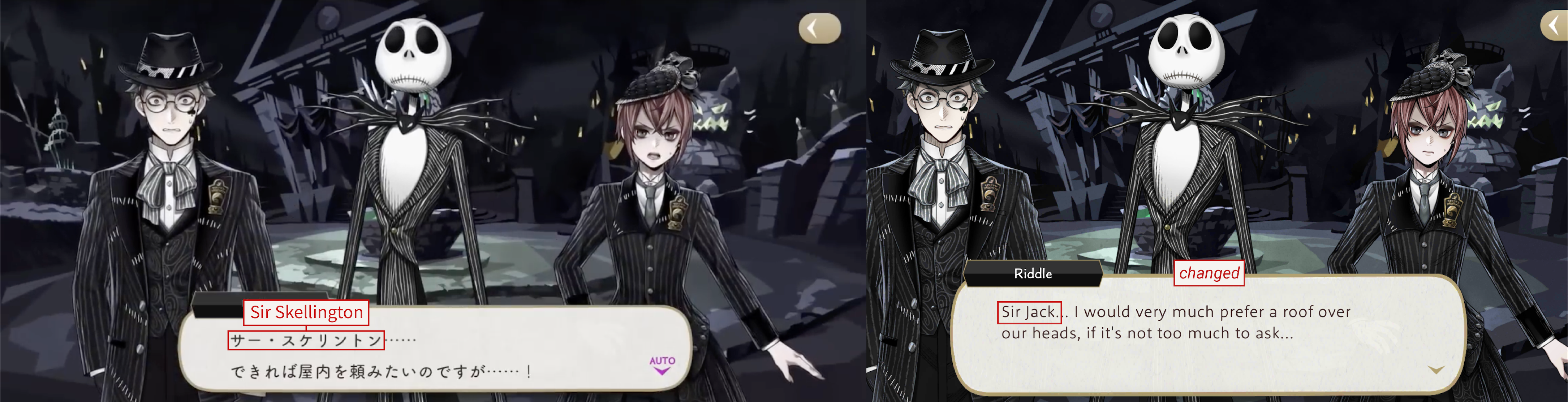 Riddle refers to Jack as “Sir Skellington” in the original game, changed to “Sir Jack” for EN.