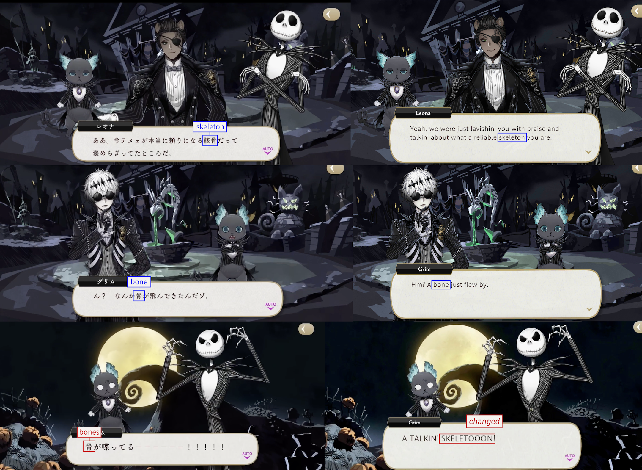 The characters consistently refer to Jack as “bones” throughout the story, changed to “skeleton” on EN.