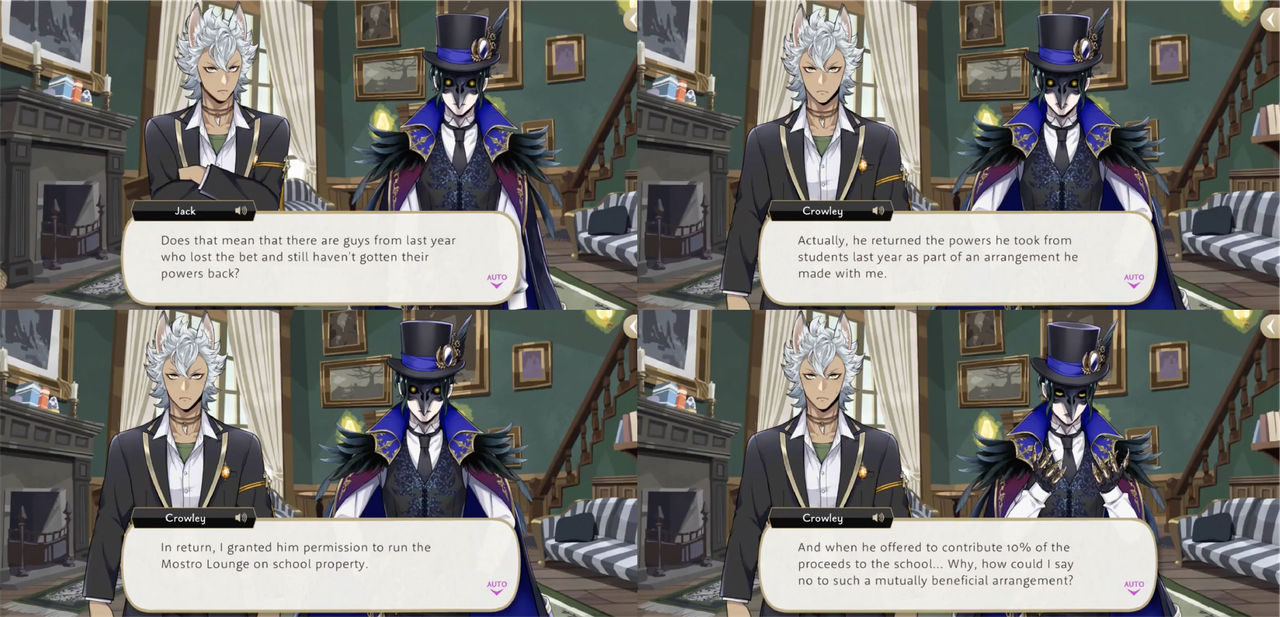 It was also as a first-year student that Azul returned the talents that he’d taken in an arrangement with Crowley, where he was granted permission to launch Mostro Lounge (in exchange for 10% of his proceeds).