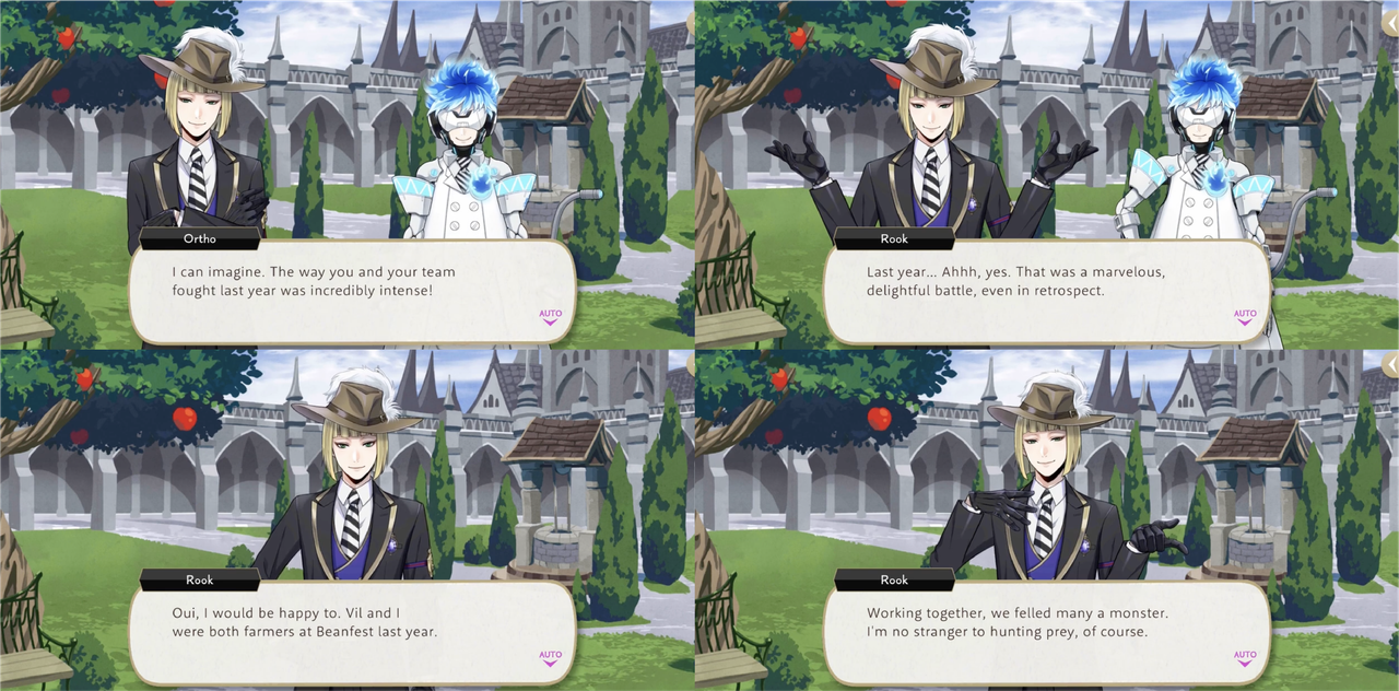 During their second year at NRC Vil and Rook were both on the farmer team during Beanfest, while Leona and Malleus were together on the monster team.
