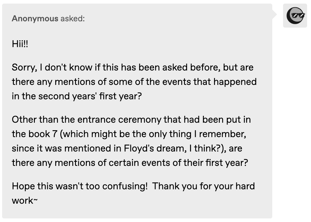 Rook’s second year is also when he gave Trey his nickname of “Chevalier des Roses.” Trey says that Rook did not call him that in their first year, but it is not specified if Rook had a different nickname for him that he changed or if he didn’t have a nickname for Trey at all until Riddle enrolled.