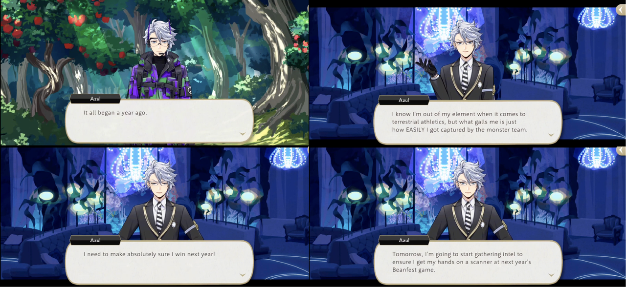 Azul did not have a very successful Beanfest in his first year and vowed to get ahold of a Field Scanner in year-2, which he achieved through a combination of interviewing upperclassmen such as Leona, Vil and Malleus, and blackmailing each member of the event committee in order to learn where the various supply crates would be set.