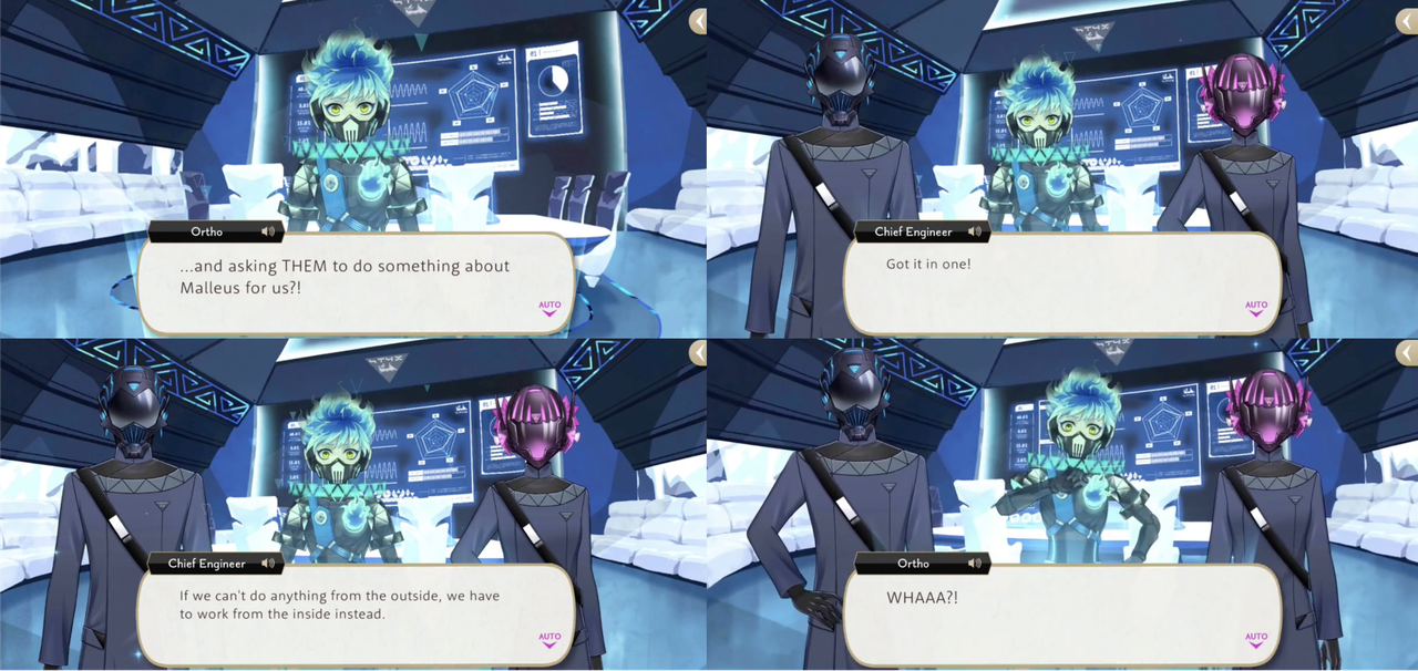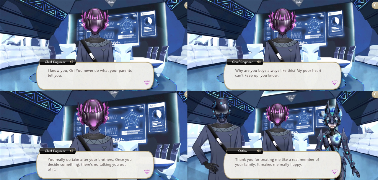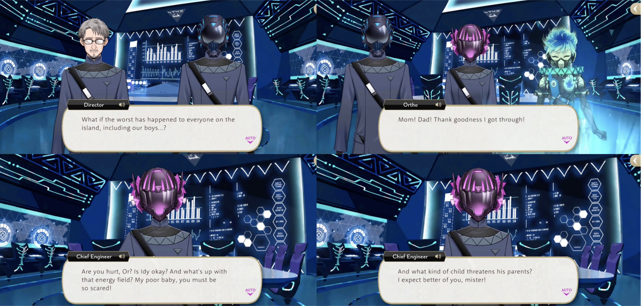The Chief Engineer refers to herself as one Ortho’s parents and Ortho refers to the two of them as mom and dad.