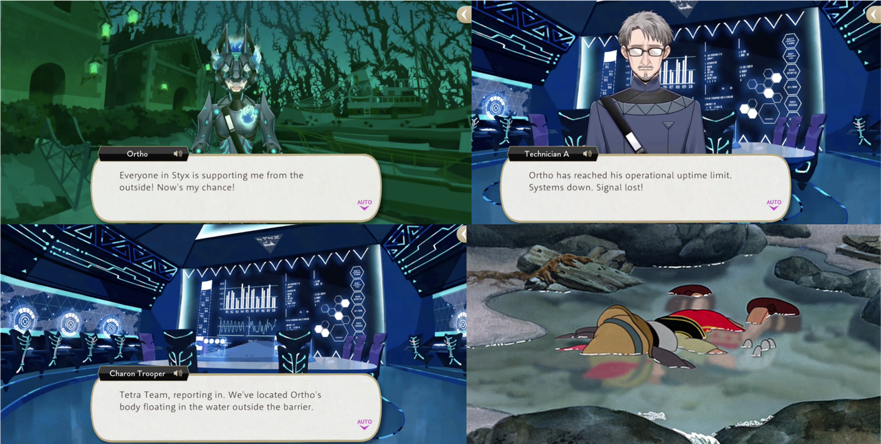 Ortho manages to escape Malleus’ domain with the data he was sent in to collect and is found with his Cerberus gear floating in the water outside of Malleus’ barrier, possibly in a reference to the original animated Pinnochio movie.