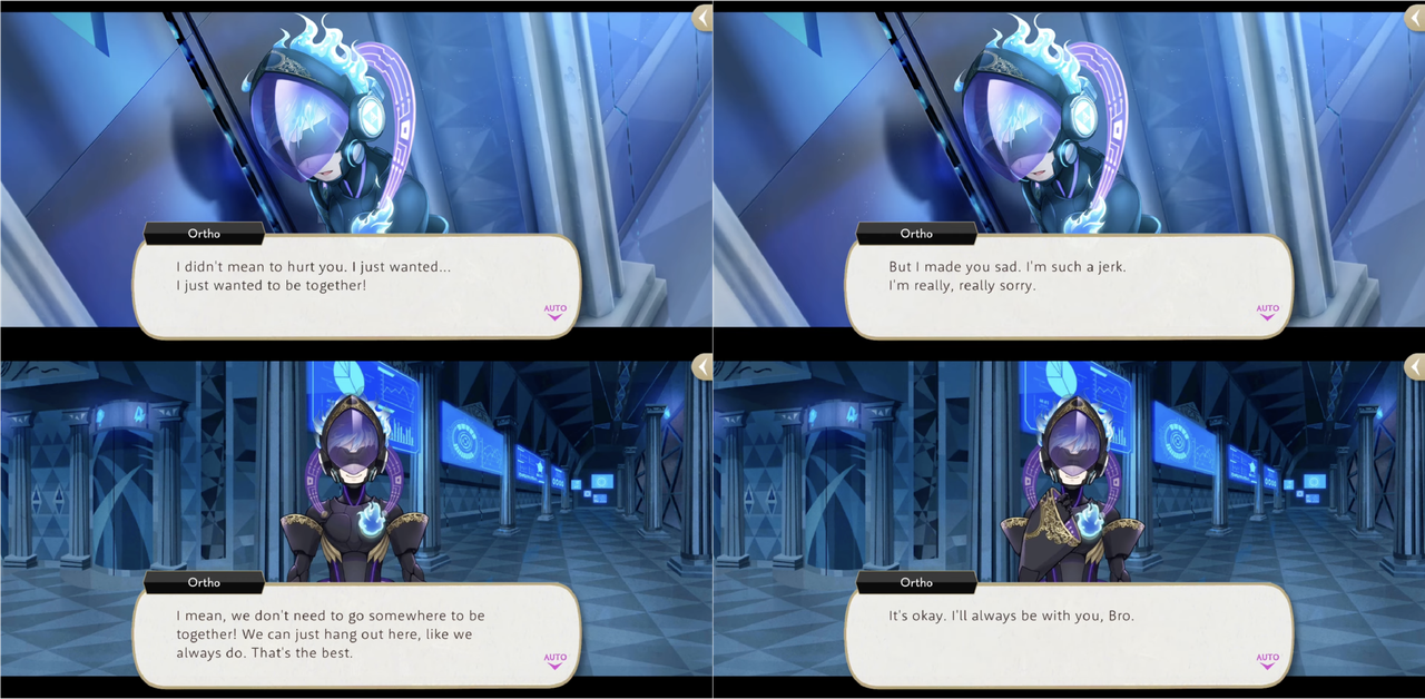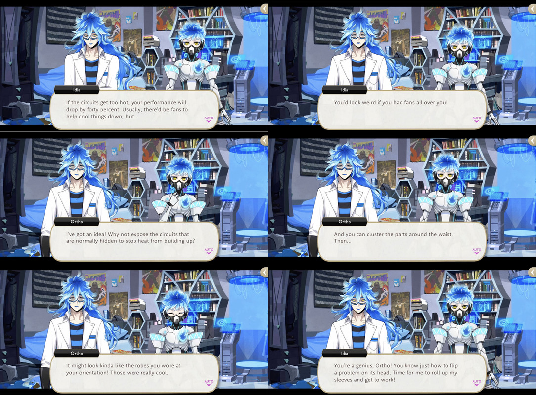 Ortho is often complimenting Idia, saying he is “amazing,” “more than cool” and that he is “super proud” of every one of the bodies that Idia has designed for him.